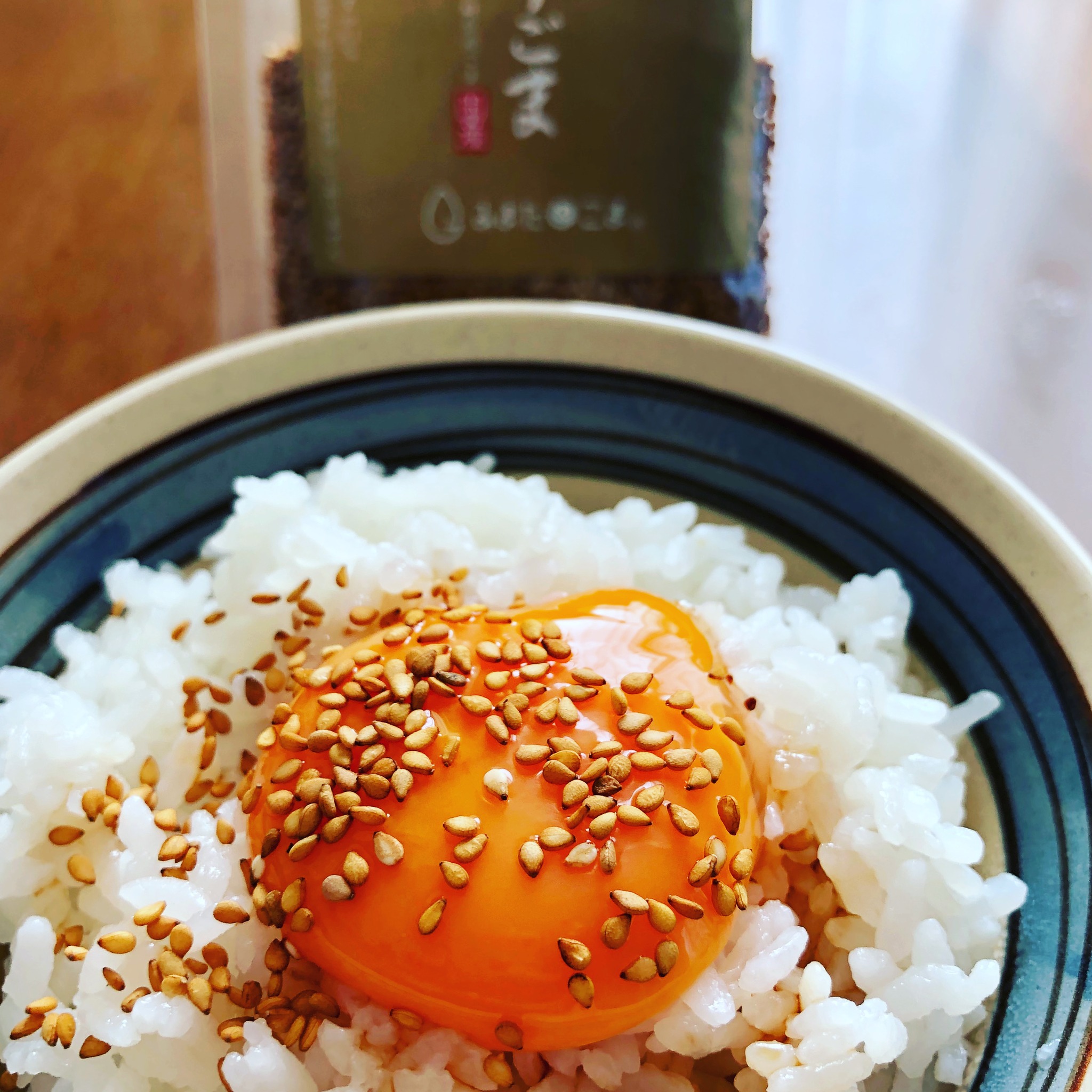 愛菜果です。先日販売開始しました「しも農園の煎り金ごま」をたまごかけご飯にかけてみました😋